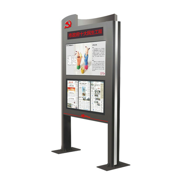 防晒防爆触摸阅报户外广告机,经专用户外粉烤漆、防水防晒、防腐蚀、防爆专业表面技术处理;可在户外使用达8年不褪色;